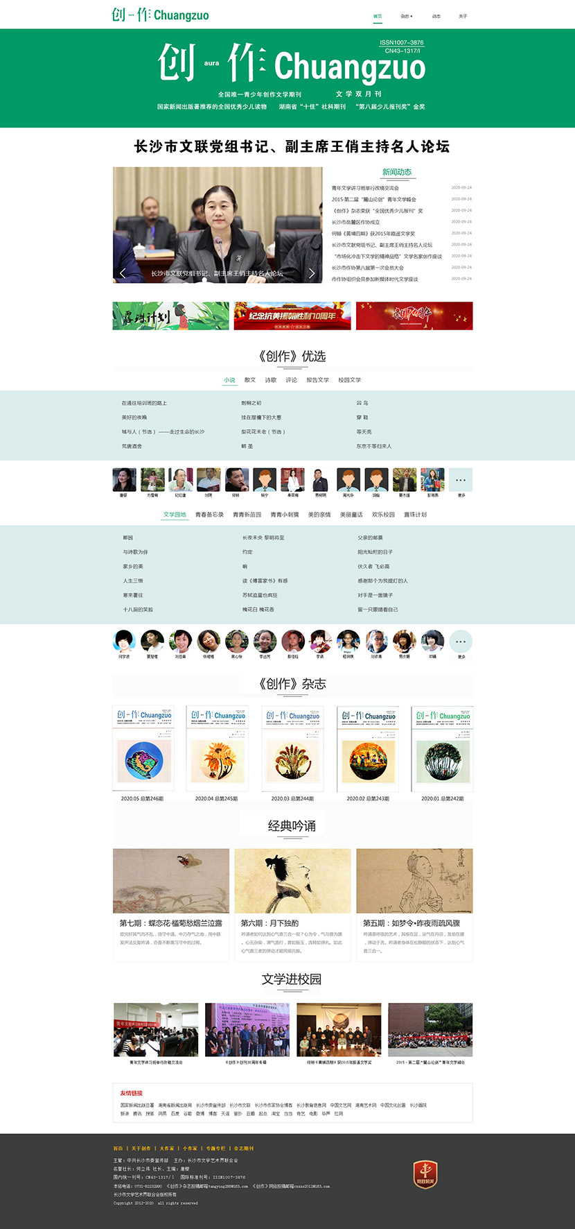 此次承(cheng)接(jie)的建設任務有:老網(wang)站積(ji)淀的作(zuo)品(pin)遷移,新(xin)版(ban)(ban)多網(wang)合(he)一(PC版(ban)(ban)、手機(ji)版(ban)(ban)、嵌入微信(xin)公(gong)眾號)的開發設計,創建了:《創作(zuo)》優選、經典吟誦、文(wen)學(xue)進(jin)校園、大作(zuo)家小作(zuo)家、露珠計劃(hua)等功能版(ban)(ban)塊。敬請期待!
