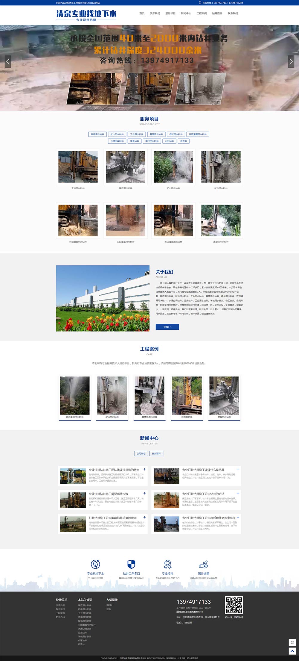 承接范圍全國40米至2000米內鉆井業務,家庭用水鉆井、礦山用水鉆井、工業用水鉆井、養殖用水鉆井、綠化用水鉆井、農田灌溉用水鉆井、水源空調鉆井、溫泉鉆井、工業用水鉆井、學校用水鉆井、山區鉆井、自流井等一切需要用水的地方,終身有效解決用水難,深層地下水,衛生環保,冬暖夏涼,健康之水,一次投資,終身受益,我們以服務熱情、技術全面,出水量大。 承接30米內旋挖工程業務,可挖600至1米2的直徑,挖水井,挖房屋樁,修橋挖橋梁樁,修路加固樁。