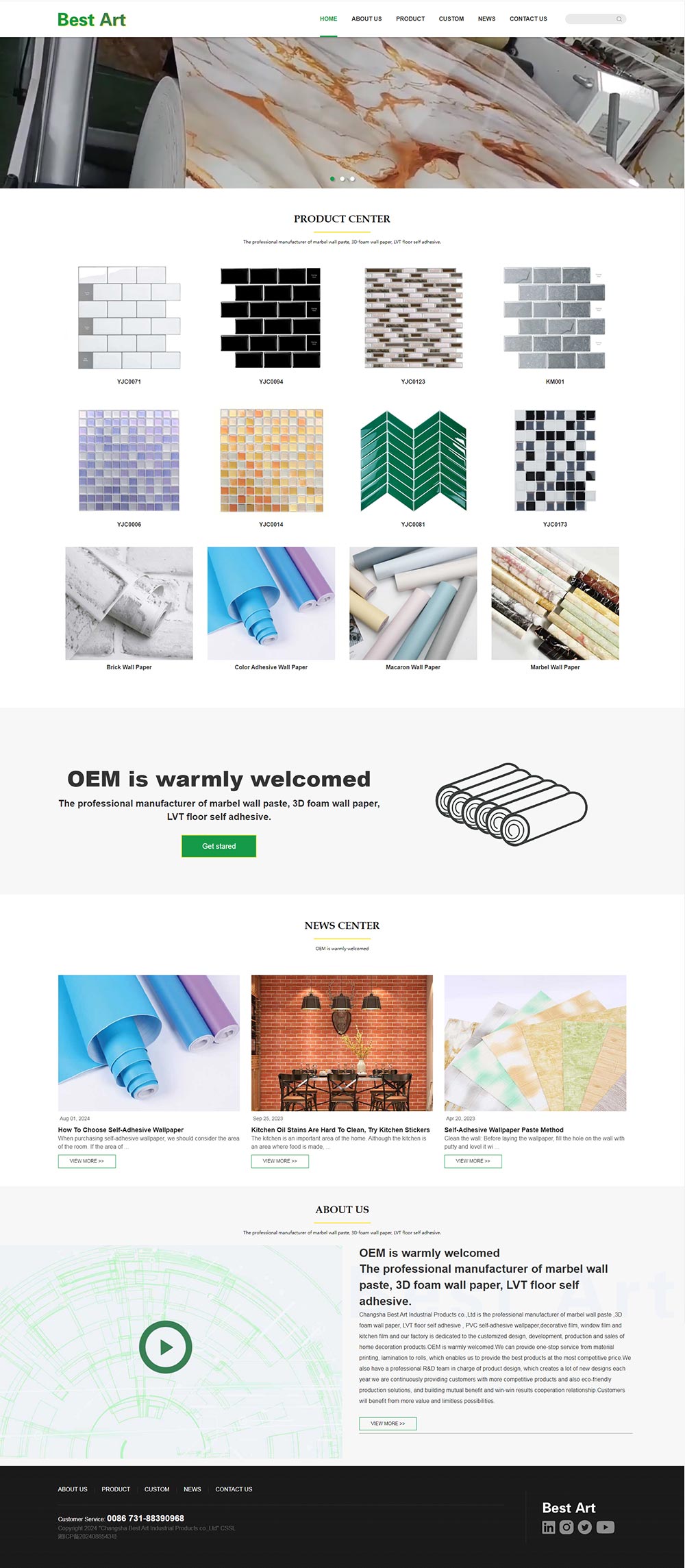 Changsha Best Art Industrial Products co.,Ltd is the professional manufacturer of marbel wall paste ,3D foam wall paper, LVT floor self adhesive,PVC self-adhesive wallpaper,decorative film, window film and kitchen film and our factory is dedicated to the