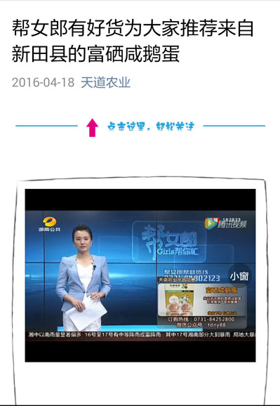 今天一看(kan),不(bu)錯啊!聯合湖南公(gong)共頻道,獲得了“幫女郎(lang)-有(you)好貨”的(de)持續推(tui)薦!配合“發(fa)現之旅(lv)”這樣的(de)買就送旅(lv)游的(de)促銷活動,人氣爆(bao)棚,好評不(bu)斷!