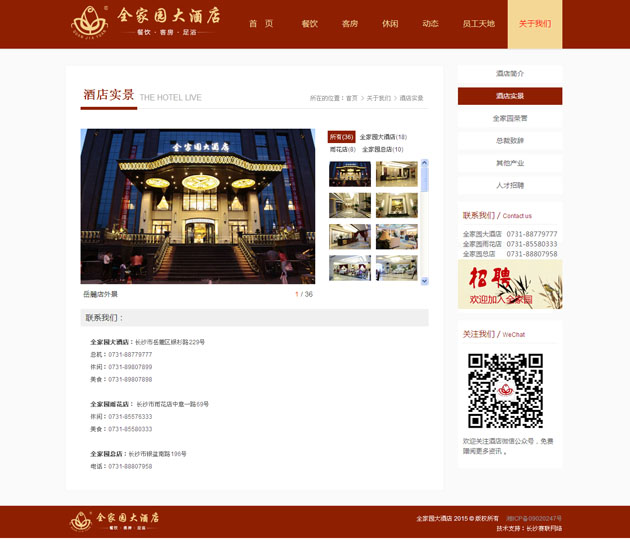 全(quan)家(jia)園(yuan)(yuan)大酒店(dian)(dian)(dian)按五星(xing)級標準(zhun)建造的(de)集客房、餐(can)飲、康樂為一(yi)體的(de)綜(zong)合型高(gao)端商(shang)務精(jing)品酒店(dian)(dian)(dian) 。網站上不(bu)僅(jin)展示(shi)了(le)全(quan)家(jia)園(yuan)(yuan)大酒店(dian)(dian)(dian),還展示(shi)了(le)全(quan)家(jia)園(yuan)(yuan)雨花店(dian)(dian)(dian)、老(lao)店(dian)(dian)(dian),及全(quan)家(jia)園(yuan)(yuan)實(shi)業旗下的(de)四一(yi)農業、濱江會(hui)所等。可(ke)實(shi)現(xian)在線的(de)餐(can)飲預定、客房預定、足浴預定,及行政管理中的(de)人才招聘(pin)等。