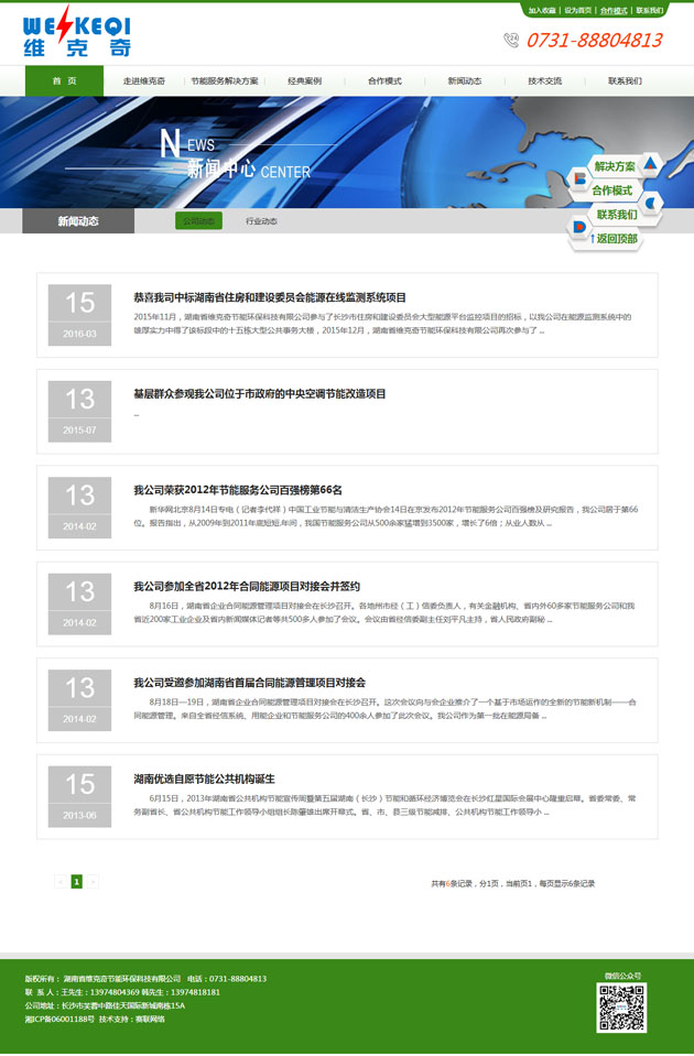 湖南省維克奇節能環保科技有限公司是湖南省節能減排項目研發、生產及服務的核心企業之一,多次得到政府嘉獎。研發的各種節能產品已榮獲政府指定使用的產品并獲得多項專利,2010年成為國家發改委第一批備案的合同能源管理公司。2012年躍居全國百強節能企業的第66位。此次網站升級、微信公眾平臺建設,委托長沙賽聯網絡進行,從此開啟愉快、雙贏的合作之旅!